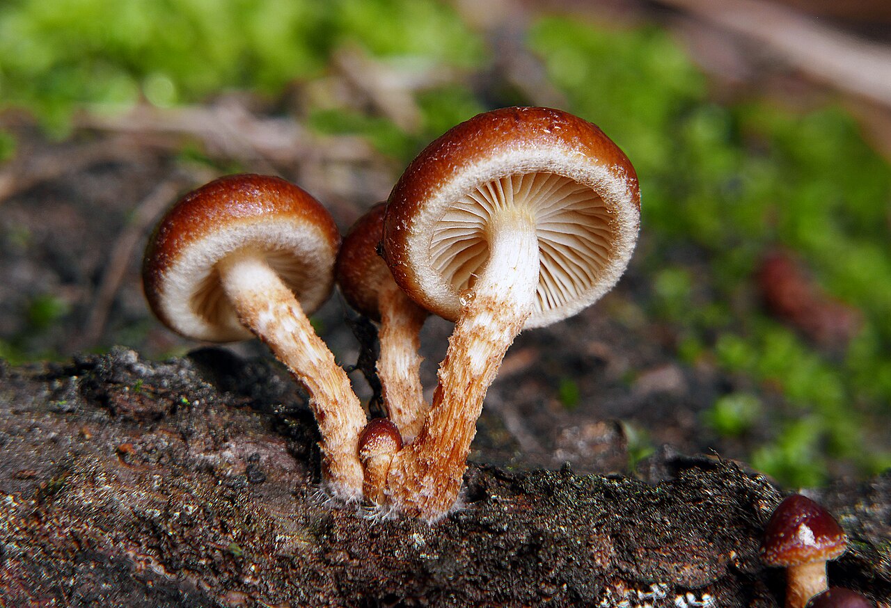 - ●A single mature Brick Cap cluster can contain over 100 individual fruiting bodies, all connected by a shared mycelial network running through the decaying wood beneath. The entire cluster is essentially one organism putting up dozens of mushrooms simultaneously.